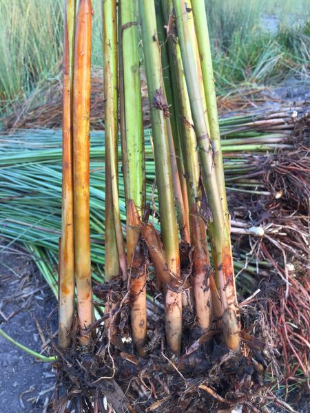 Cỏ bàng được thu hoạch khi cây trưởng thành, thường là từ 1-2 năm tuổi. Sau khi thu hoạch, cỏ bàng được phơi khô, chẻ nhỏ và nhuộm màu theo yêu cầu. Cỏ bàng được sử dụng để làm nguyên liệu sản xuất nhiều mặt hàng thủ công mỹ nghệ như túi xách, giỏ, nón, mành, chiếu,...